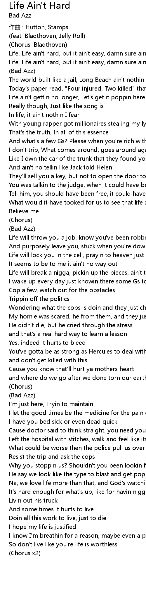 | Life, Life ain' t hard, but it ain' t easy, damn sure ain' t easy hey | |