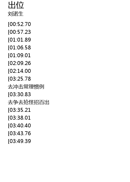 | [03:59.52][03:30.83][02:23.58][01:25.86] | pīn mìng wèi le chū wèi qù zhēng qù qiǎng guài zhāo bǎi chū |