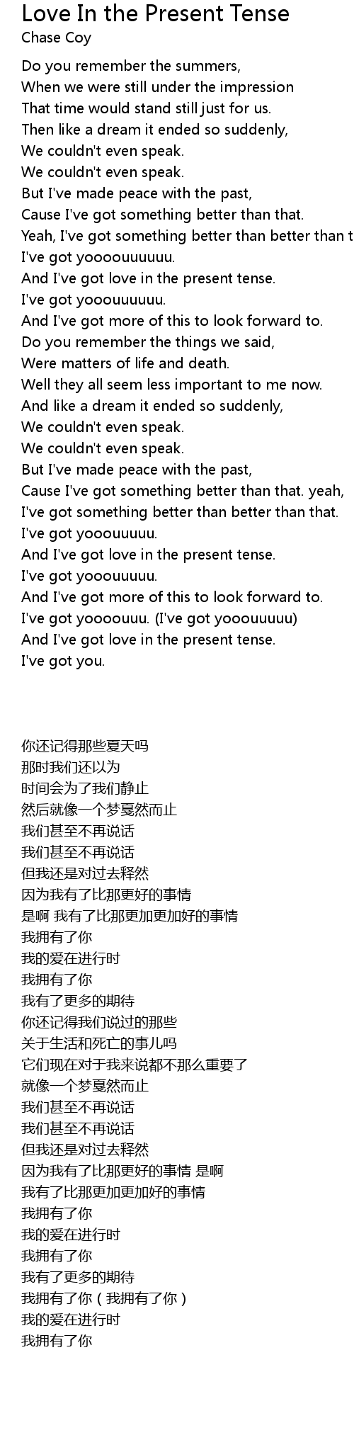 And I've got love in the present tense. |