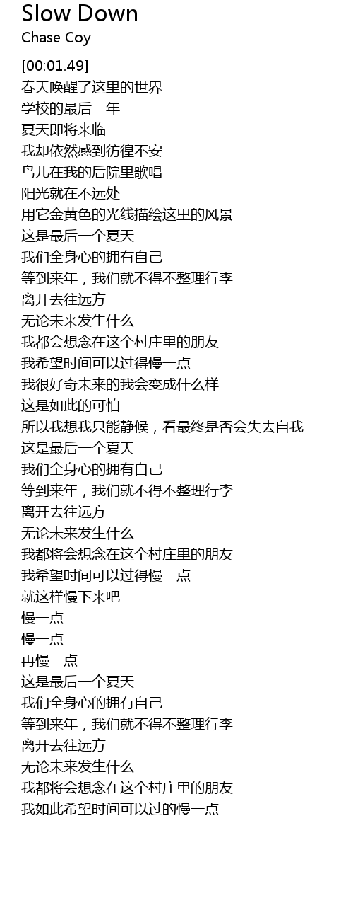| [02:08.36] | 我希望时间可以过得慢一点 |