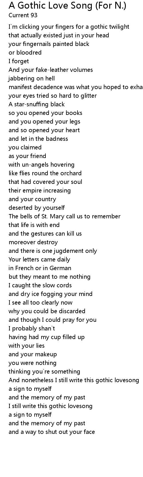 A Gothic Love Song (For N.) Lyrics