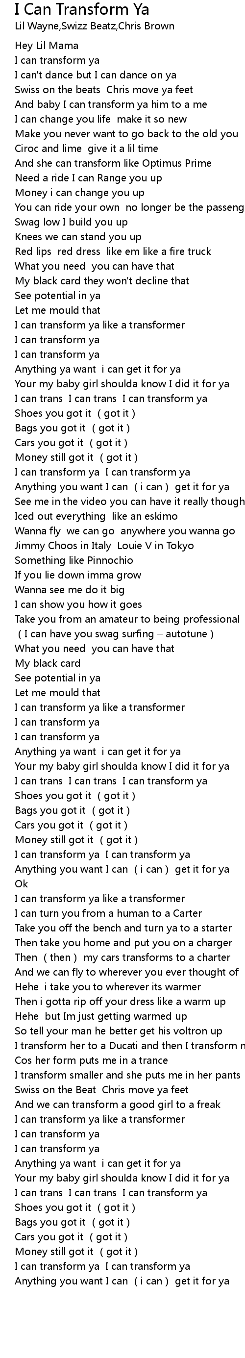 | [01:06.01] | I can trans I can trans I can transform ya |