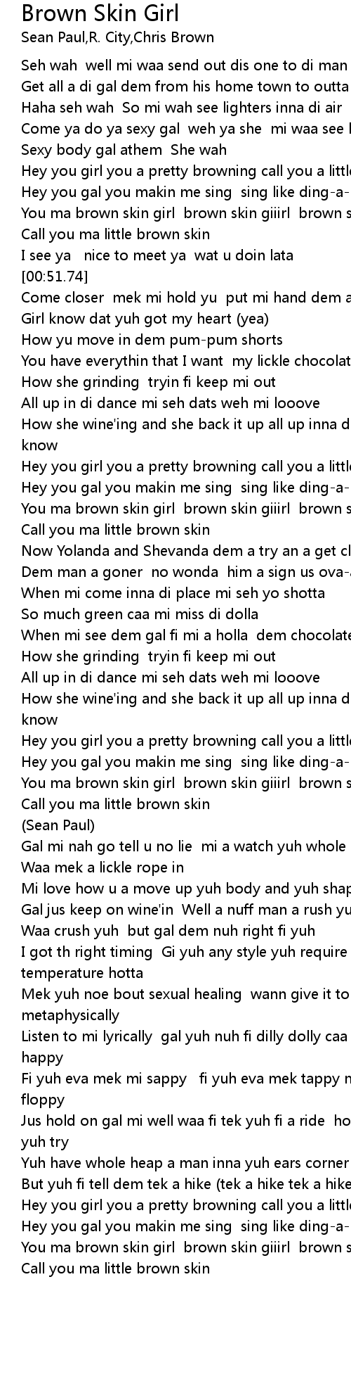 | [00:34.94] | You ma brown skin girl brown skin giiirl brown skin girl |