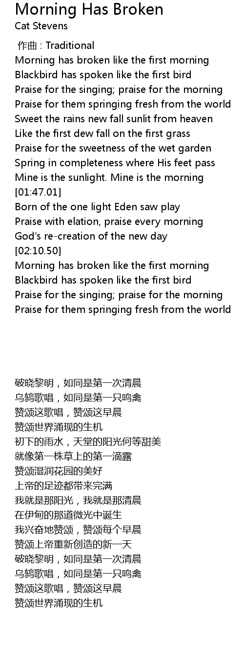 | [02:40.32] | Praise for the singing; praise for the morning |