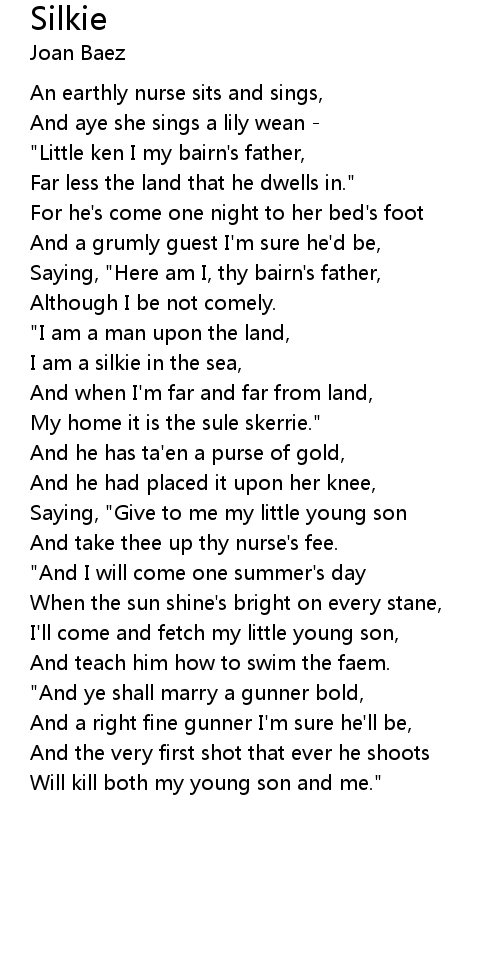 | I am a silkie in the sea, | |