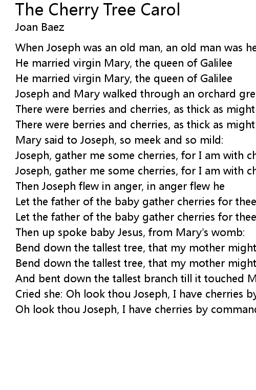 | [02:35.00] | Cried she: Oh look thou Joseph, I have cherries by command |