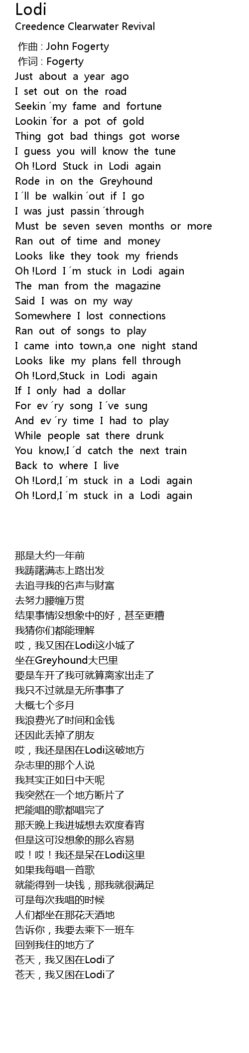 | [01:44.737] | Oh !Lord,Stuck in Lodi again |