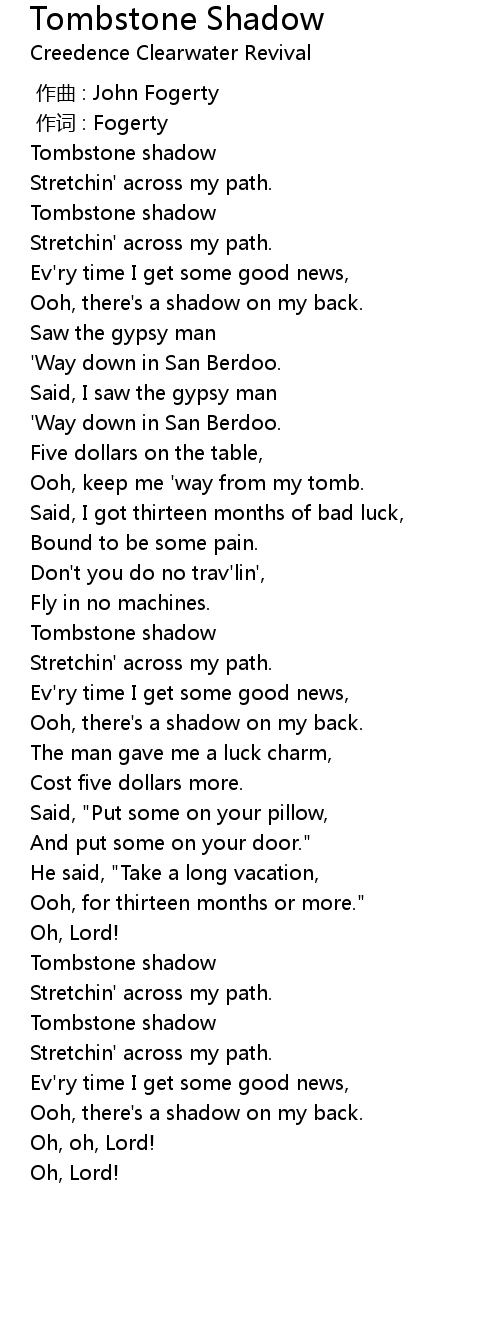 | [00:00.00] | 作曲 : John Fogerty |