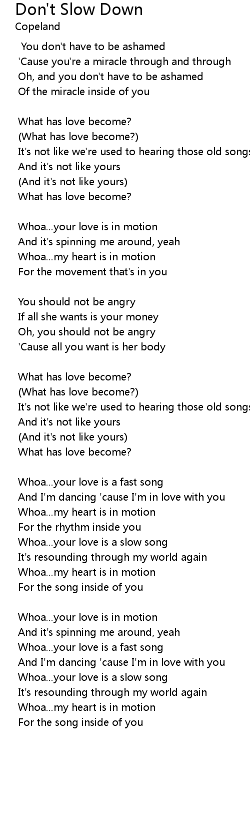 Whoa...your love is in motion |