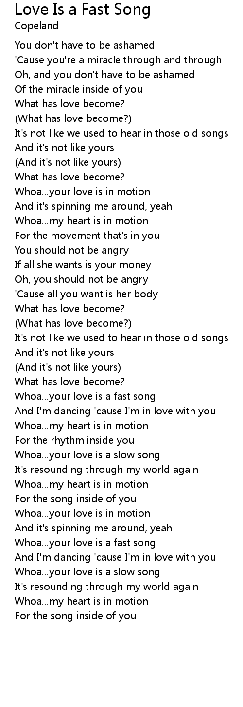 Whoa...your love is a fast song |