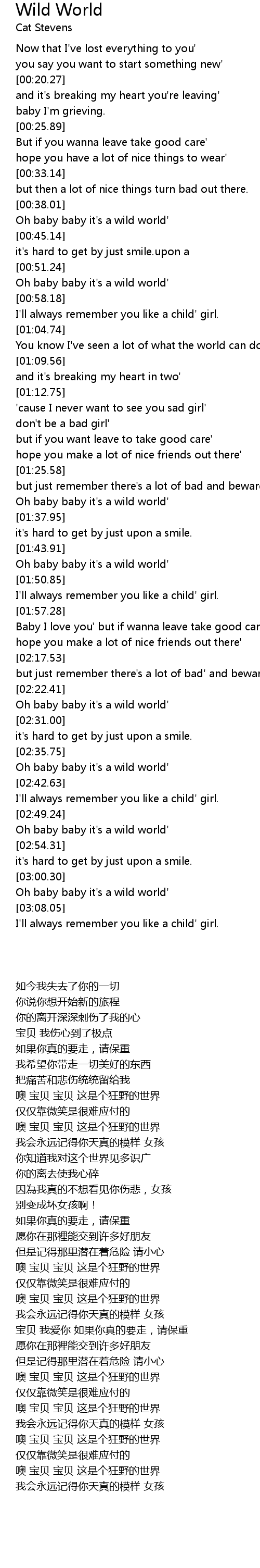 Oh baby baby it's a wild world' |