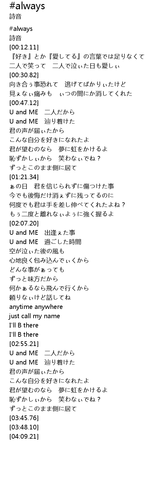 | [03:36.44] | 恥ずかしぃから 笑わなぃでね? |