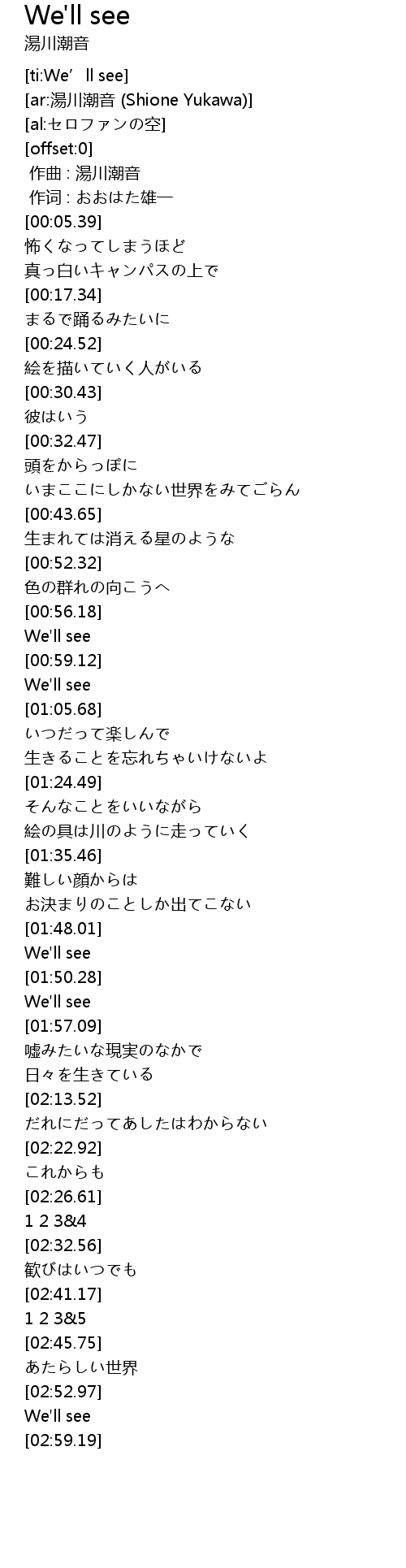 | [00:00.00] | 作曲 : 湯川潮音 |