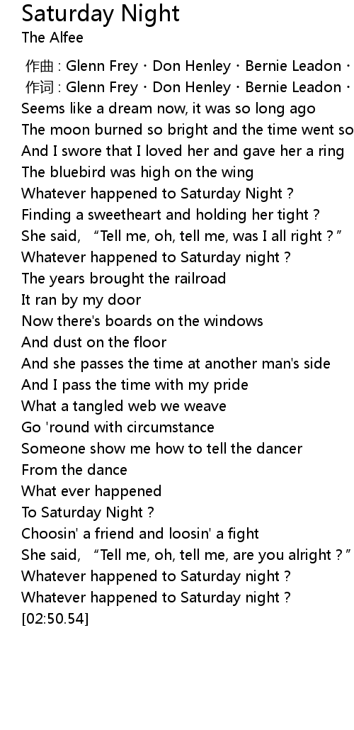 | [00:39.52] | Whatever happened to Saturday Night? |