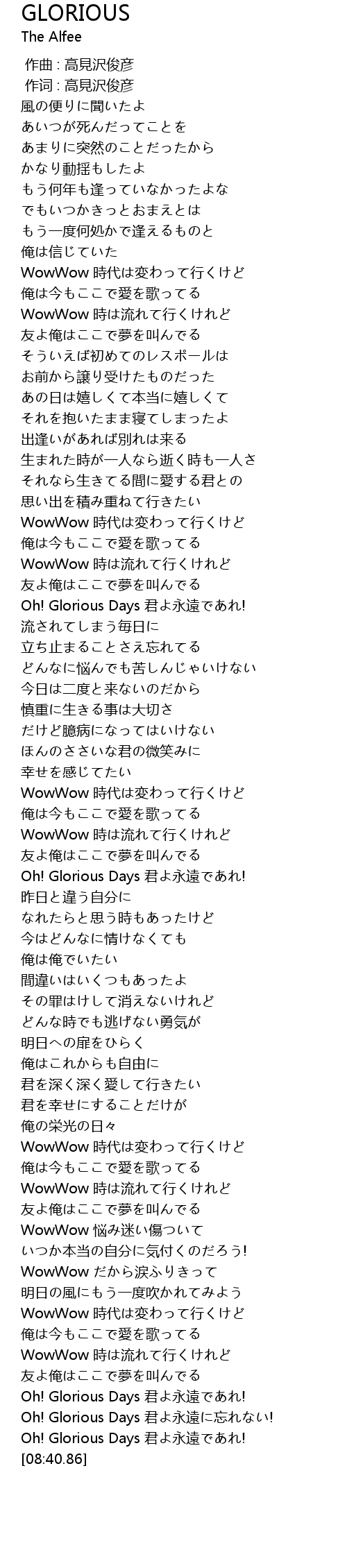 | [07:47.64] | Oh! Glorious Days 君よ永遠に忘れない! |