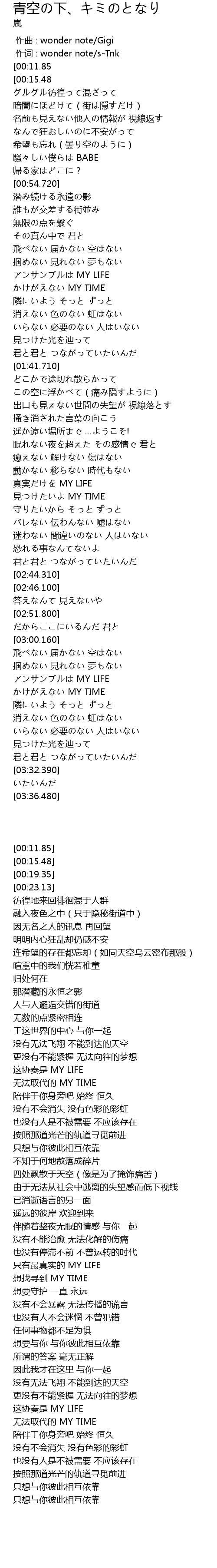 | [00:01.00] | 作词 : wonder note/s-Tnk |