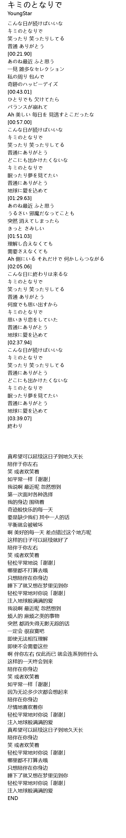 | [01:58.58] | Ah 側にいる それだけで 何かしらつながる |