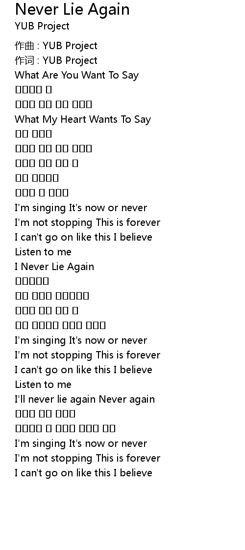 | I' ll never lie again Never again | |