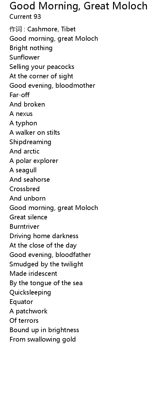 | Good morning, great Moloch | |