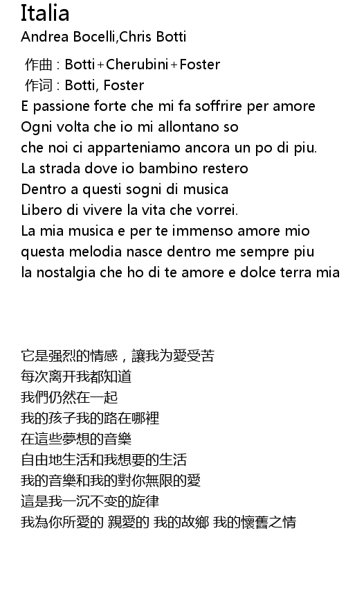 | [03:58.39] | la nostalgia che ho di te amore e dolce terra mia |