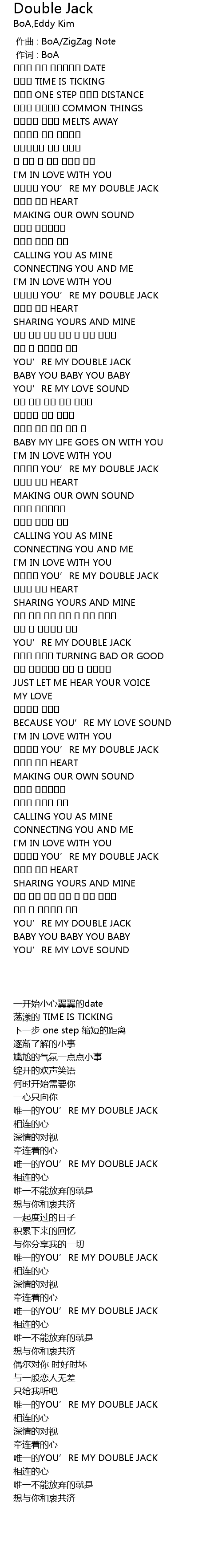 | [02:30.850] | YOU’RE MY DOUBLE JACK |