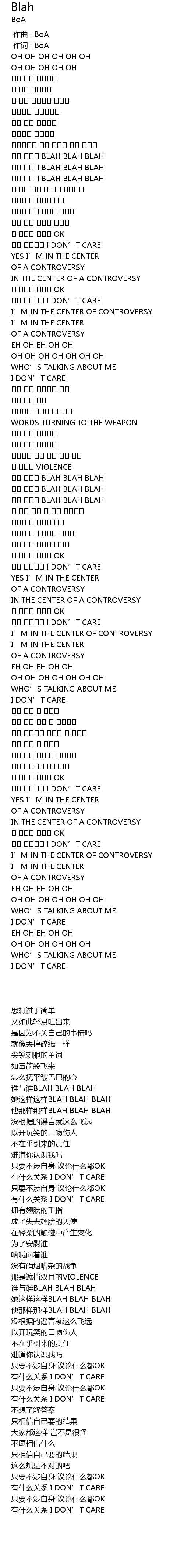 | [00:01.00] | 作词 : BoA |