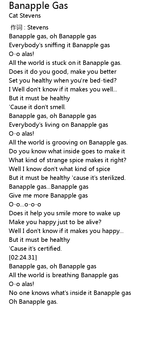 | [00:24.82] | Everybody's sniffing it Banapple gas |