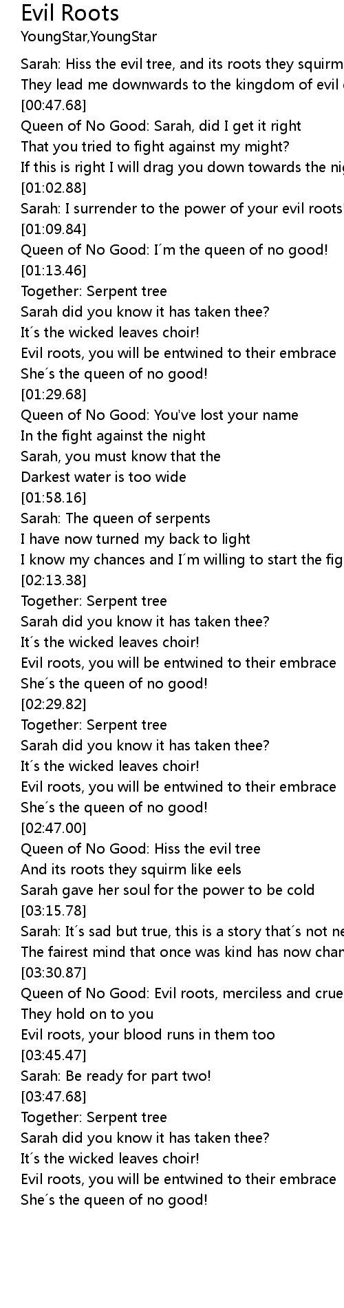 | [03:33.06] | Queen of No Good: Evil roots, merciless and cruel |