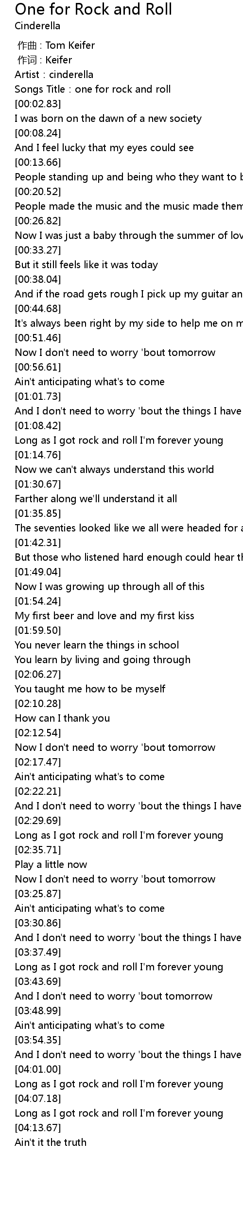 | [03:39.93] | Long as I got rock and roll I' m forever young |