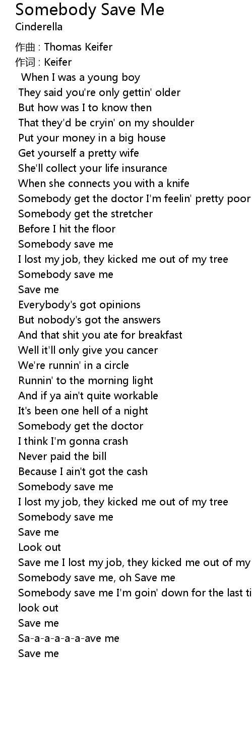 | Somebody save me, oh Save me | |