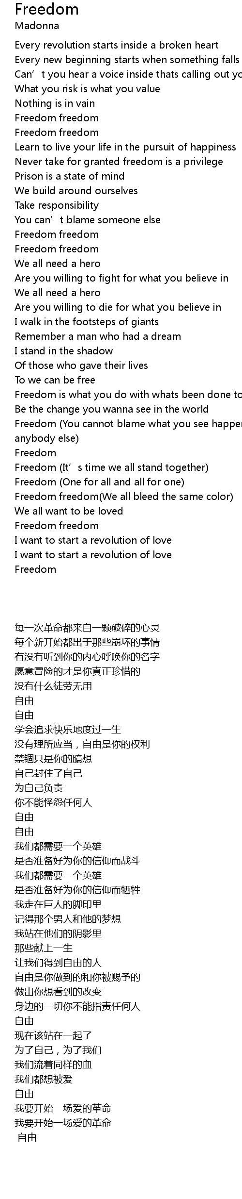 | [03:00.94] | Freedom freedom(We all bleed the same color) |