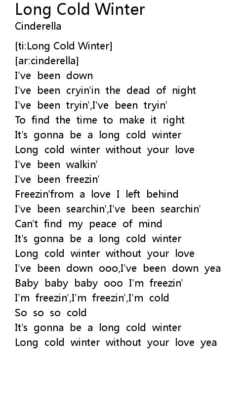 Long cold winter without your love yea |