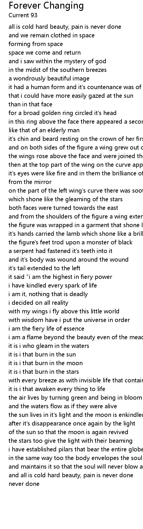 it's eyes were like fire and in them the brilliance of angels streamed forth |