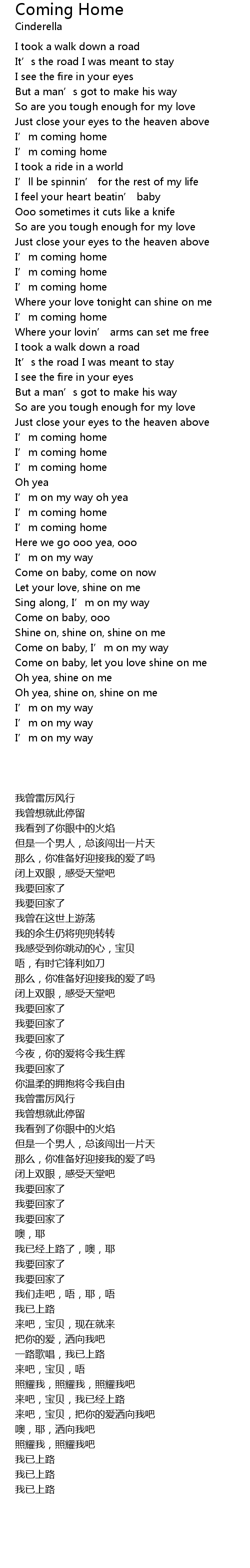 | [00:42.010] | I' m coming home |