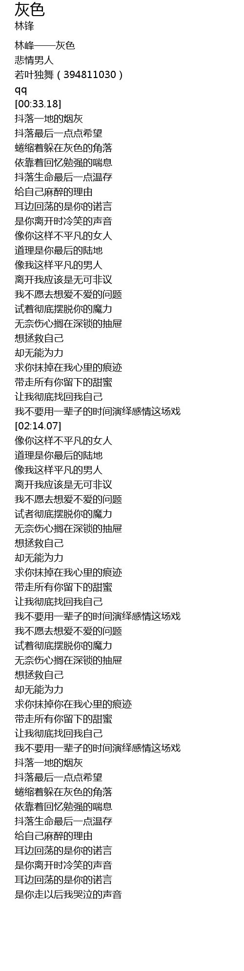 | [00:44.38] | 蜷缩着躲在灰色的角落 |