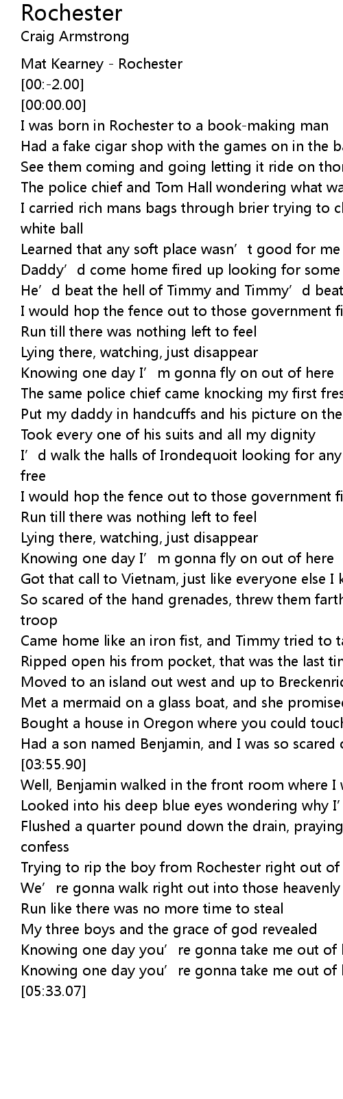 | [04:47.50] | Trying to rip the boy from Rochester right out of my chest |