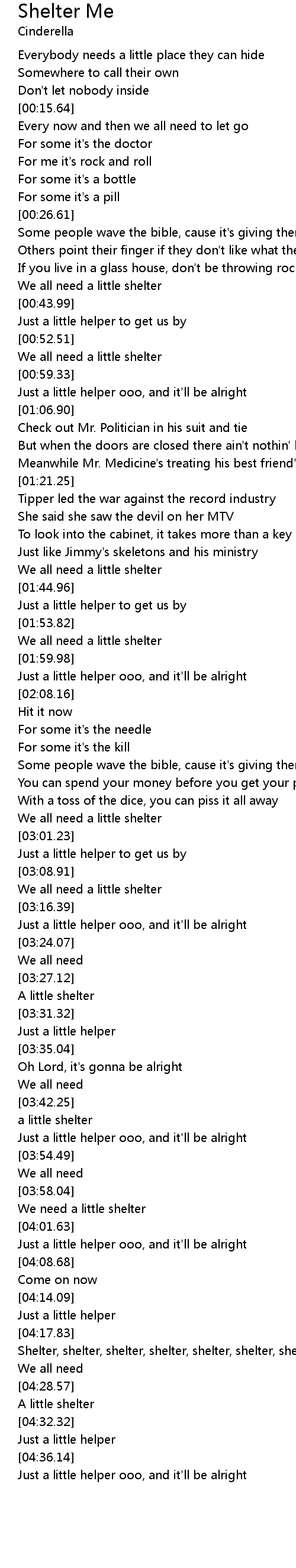 Just a little helper ooo, and it'll be alright |