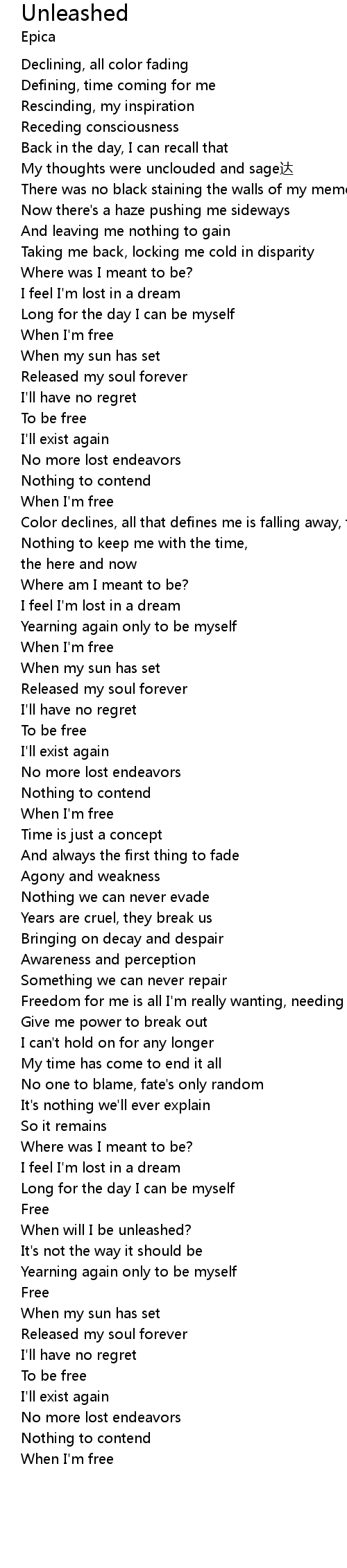 | [03:41.89] | Freedom for me is all I'm really wanting, needing |