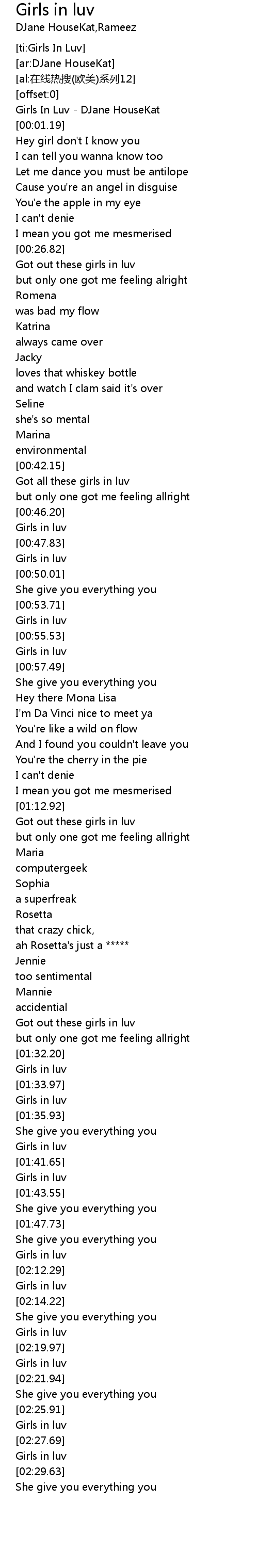 | [00:00.18] | Girls In Luv - DJane HouseKat |