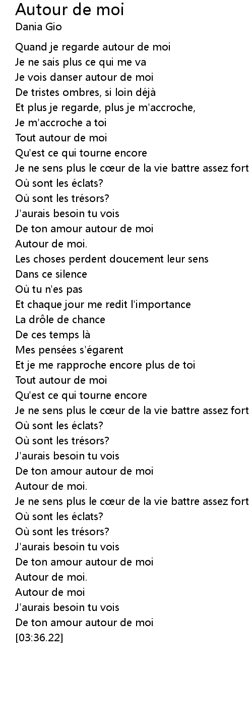 | [02:03.87] | Tout autour de moi |