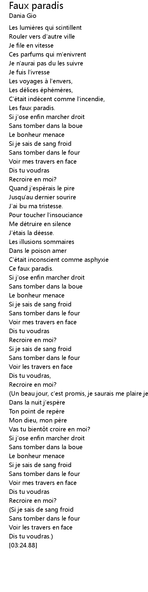 | [02:23.79] | (Un beau jour, c'est promis, je saurais me plaire je m'y perd.) |