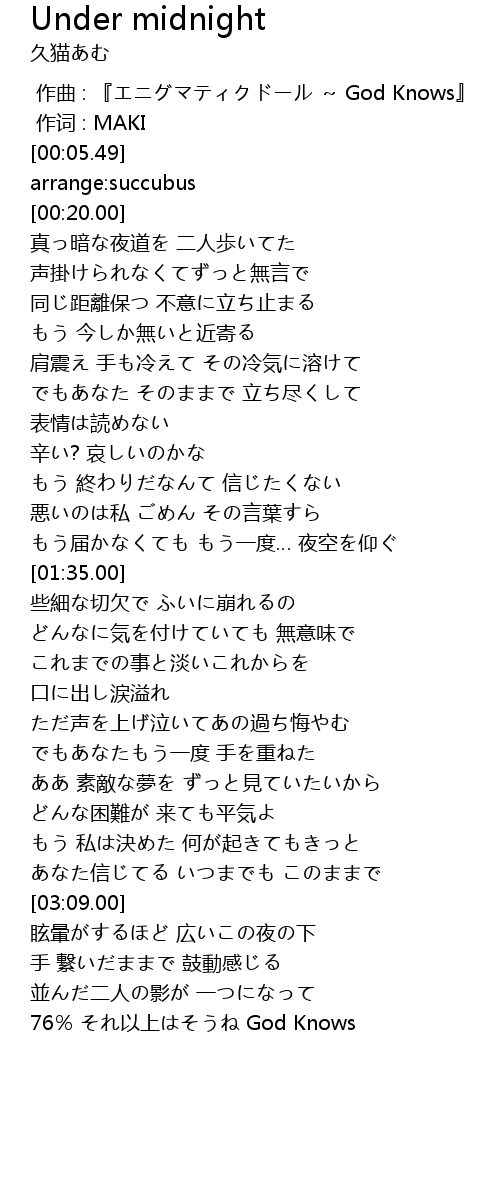 | [00:00.00] | 作曲 : 『エニグマティクドール ~ God Knows』 |