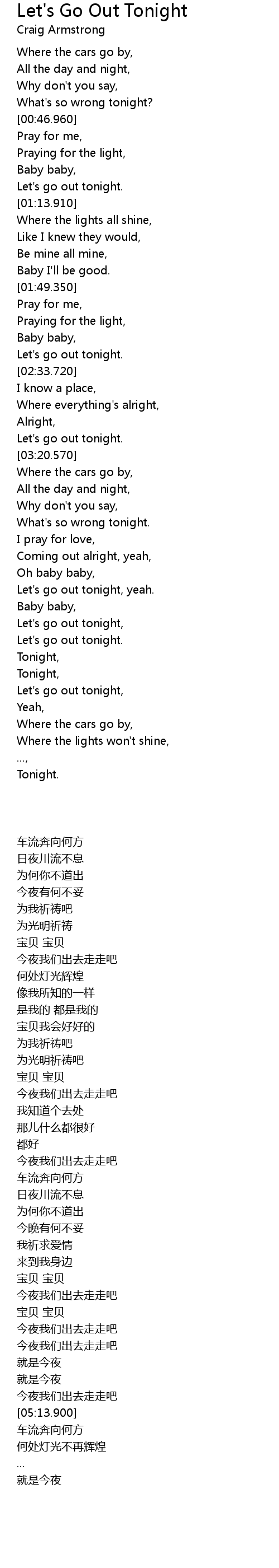 | [04:17.450] | Let' s go out tonight, yeah. |