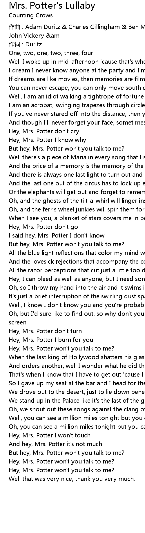 | But hey, Mrs. Potter won' t you talk to me? | |
