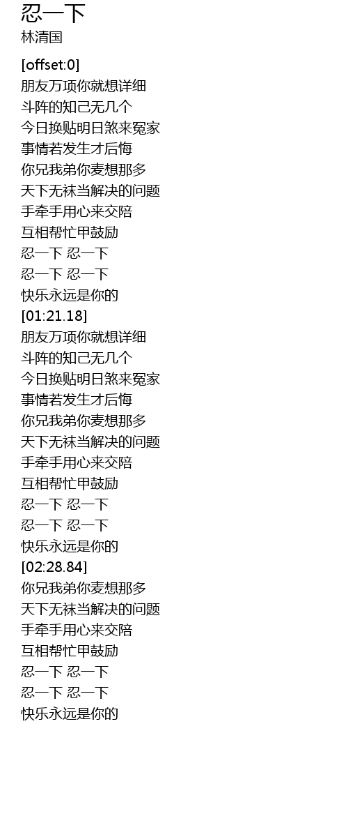| [01:11.76] | 忍一下 忍一下 |