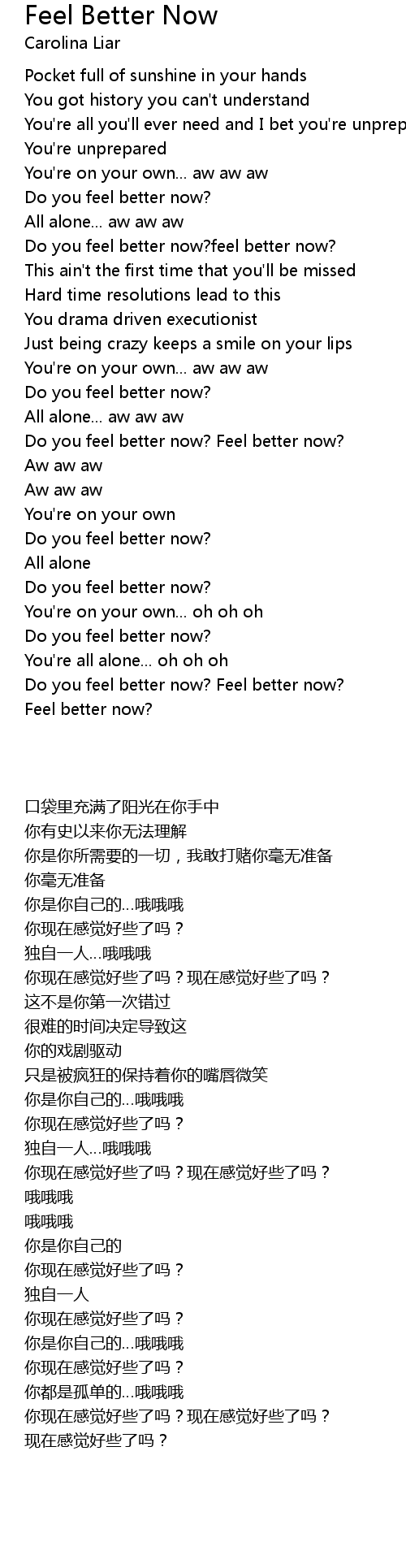 Do you feel better now? Feel better now? |
