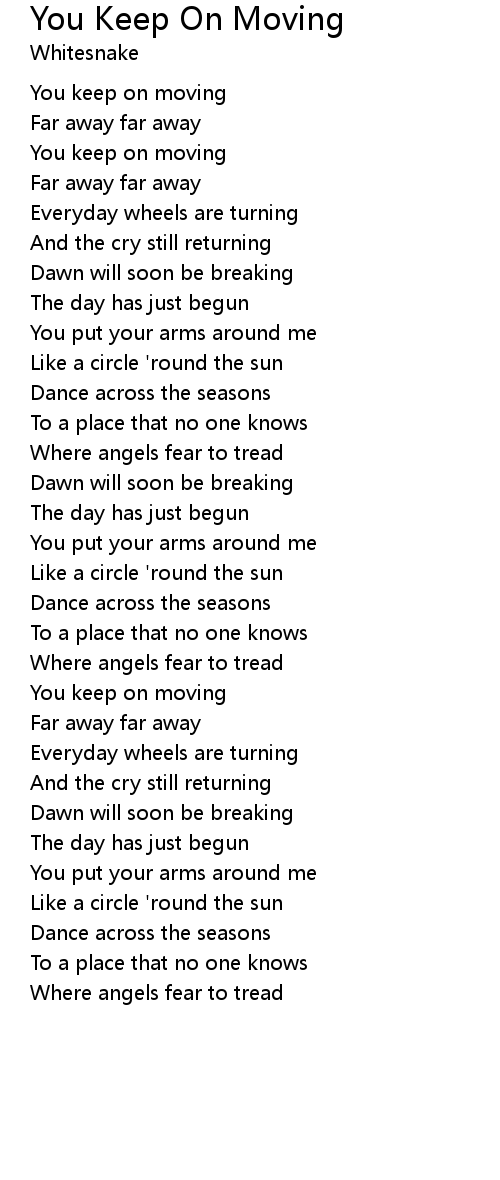 You keep on moving |