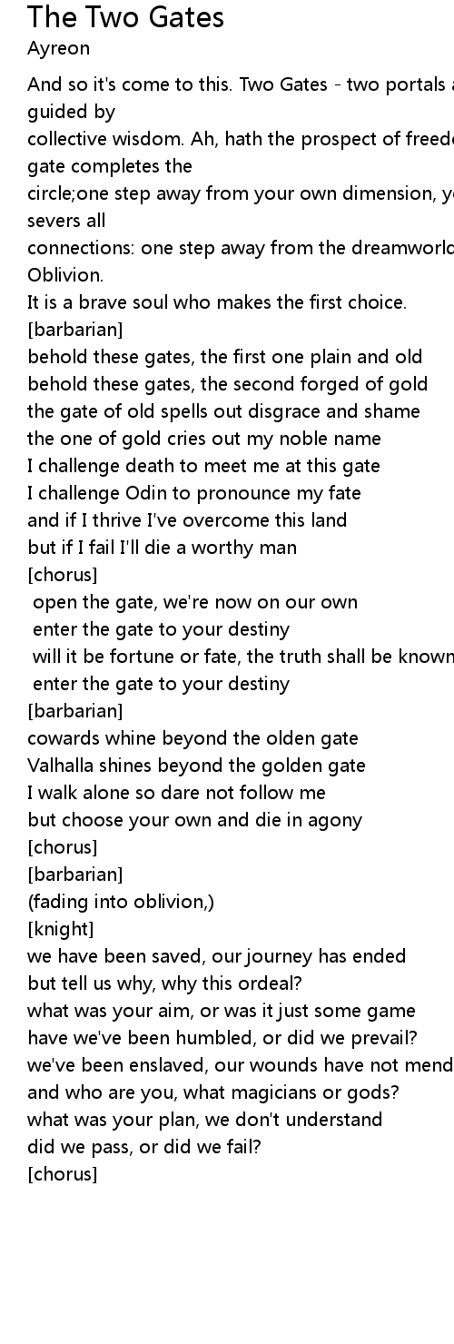 | And so it's come to this. Two Gates - two portals await. Let your choice be guided by | |