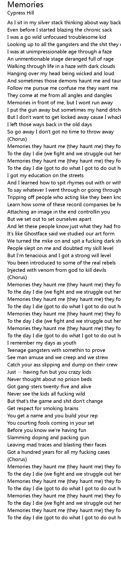 To the day I die (we fight and we struggle out here so we can stay alive) |