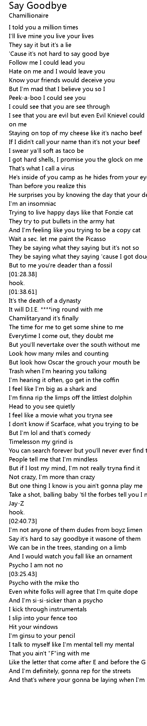 Say it's hard to say goodbye it wasone of them |